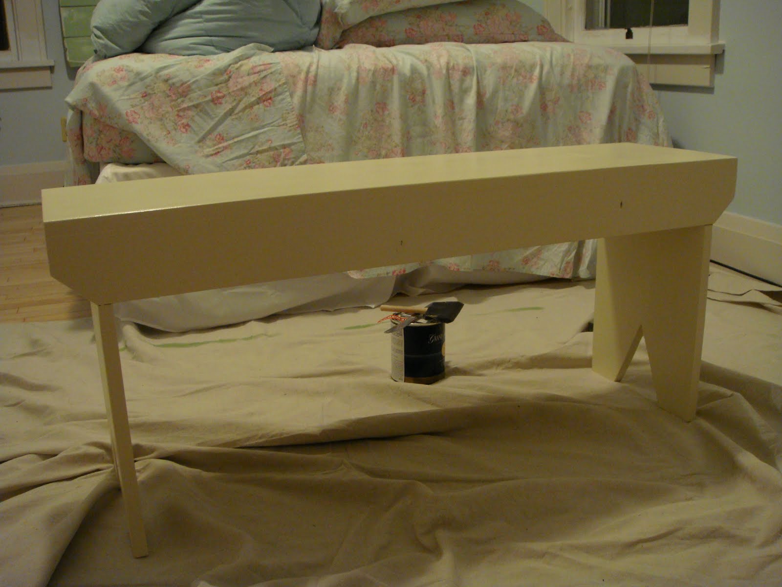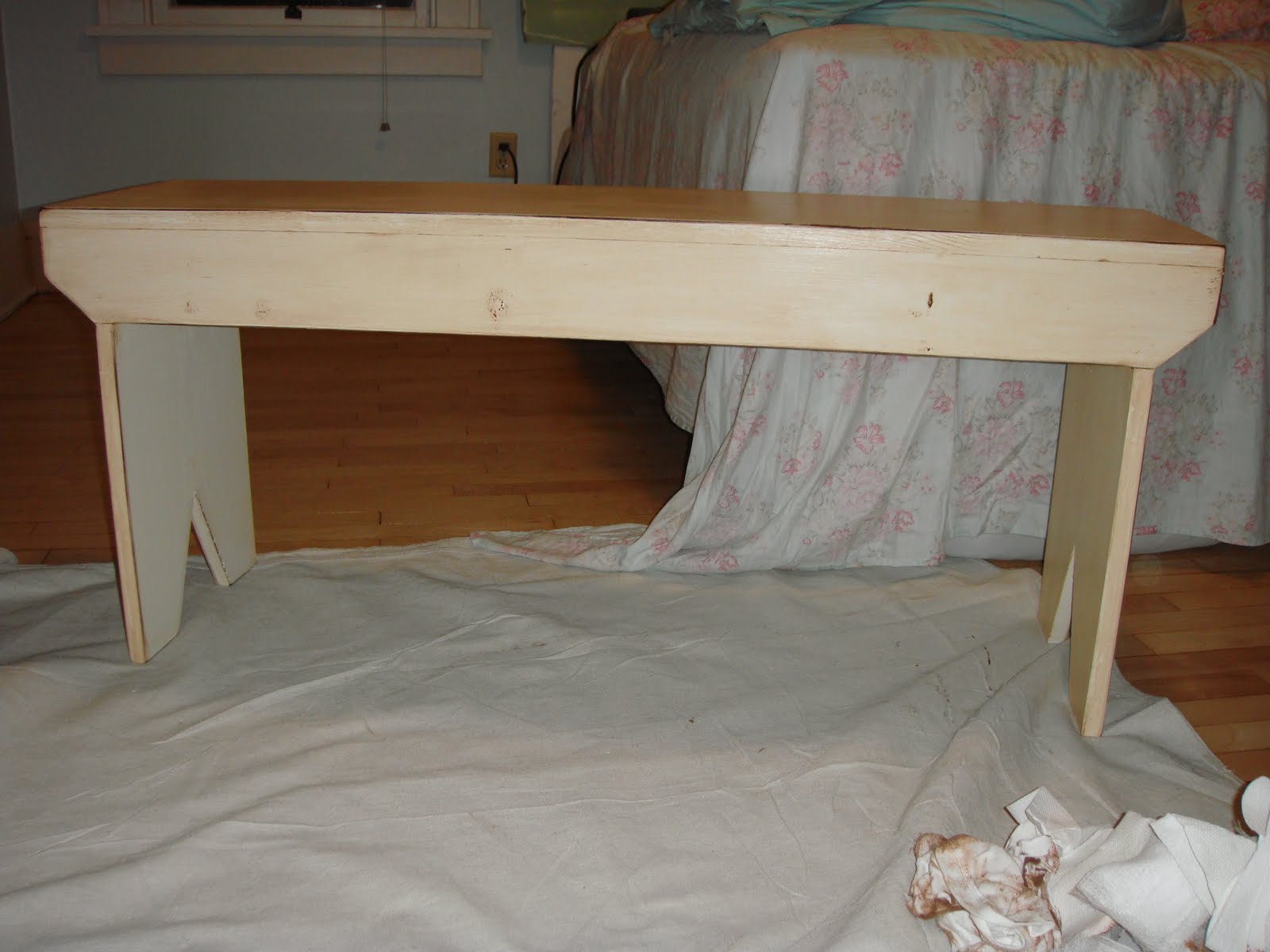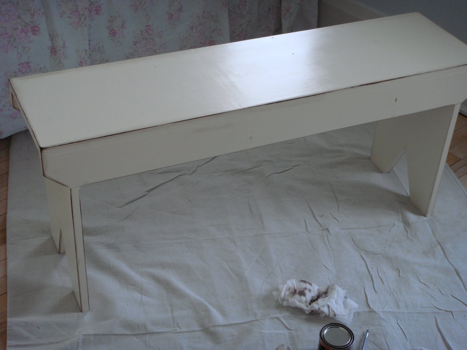 In hindsight, I should have stopped at this point, polyed the whole thing, and called it good. However, this was my first experience with finishing furniture, and I thought I wanted to apply an antiquing glaze over the paint to distress the bench a little bit more...