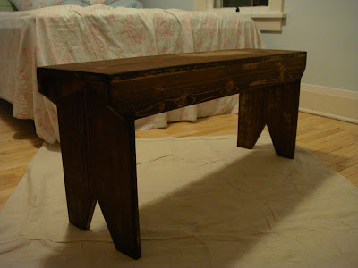 All of the lumber was purchased at Menards, along with most of the supplies needed to create the distressed finish. Now, I have to be honest here, I did not technically build this bench--as much as I hate to admit it (sorry, Ana!), a power-tool owning master craftsman actually built it for me while I was at work! : ) I am confident that I could build it, so that counts for something, right?!